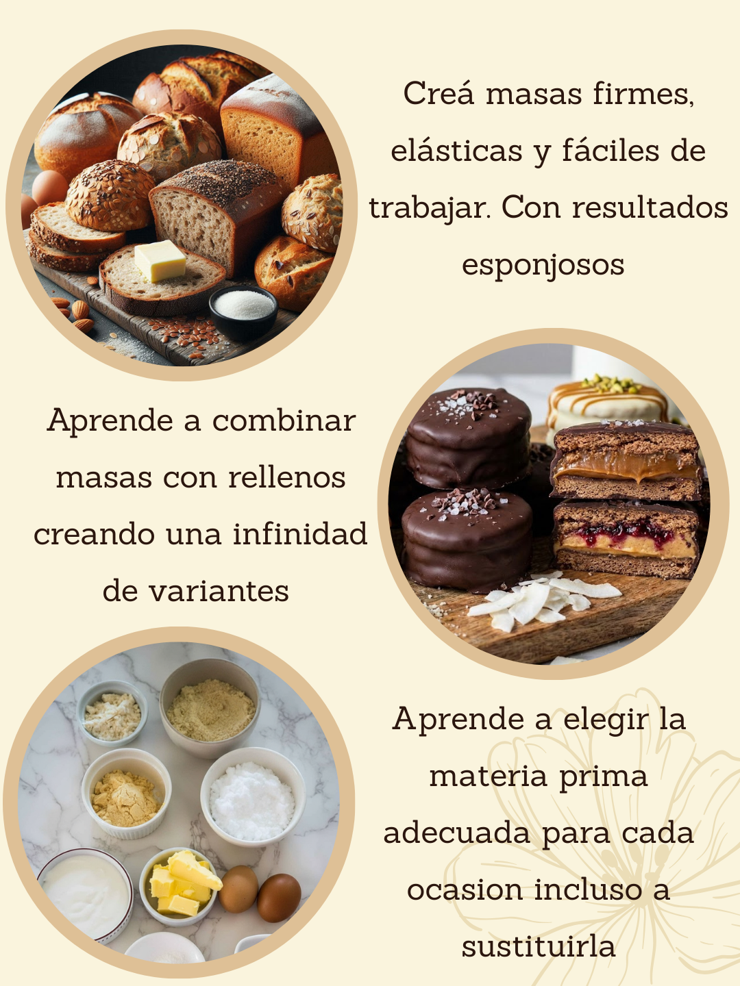 Siempre se me desarmaban las masas y no entendía por qué. Ahora sé cómo ajustar ingredientes y tiempos. El módulo de bases me ayudó muchísimo.
